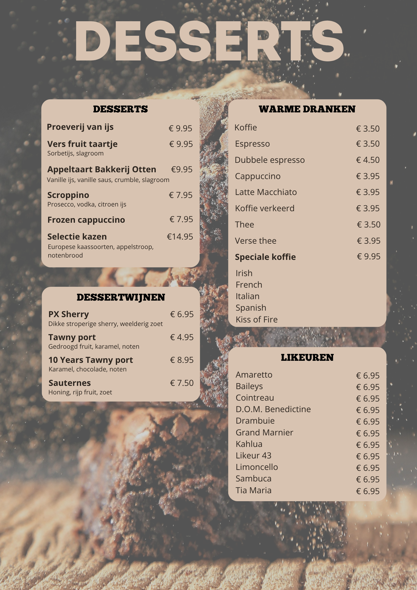 €35,- pp | Kinderen t/m 12 jaar €25,-